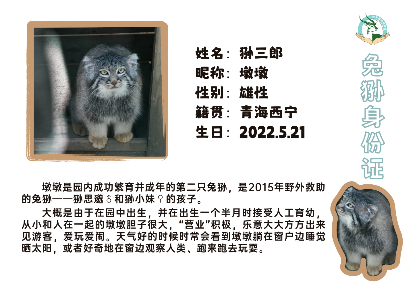 “狲三郎”的身份证。据西宁野生动物园官网。